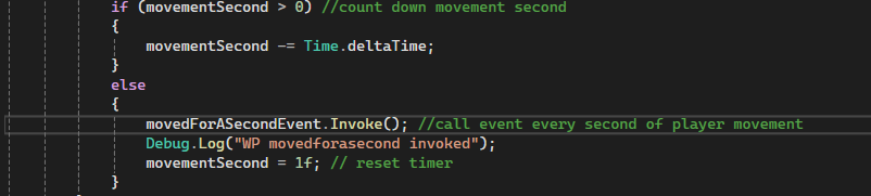 While the player is moving a timer counts down every second before invoking the movedforasecondevent.