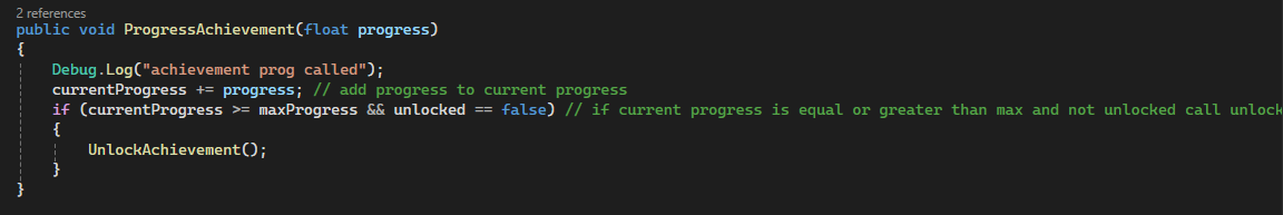 Progressachievement adds progress to the current progress of the achievement if it reaches or exceeds the max progress of the achievement it calls unlockachievement.